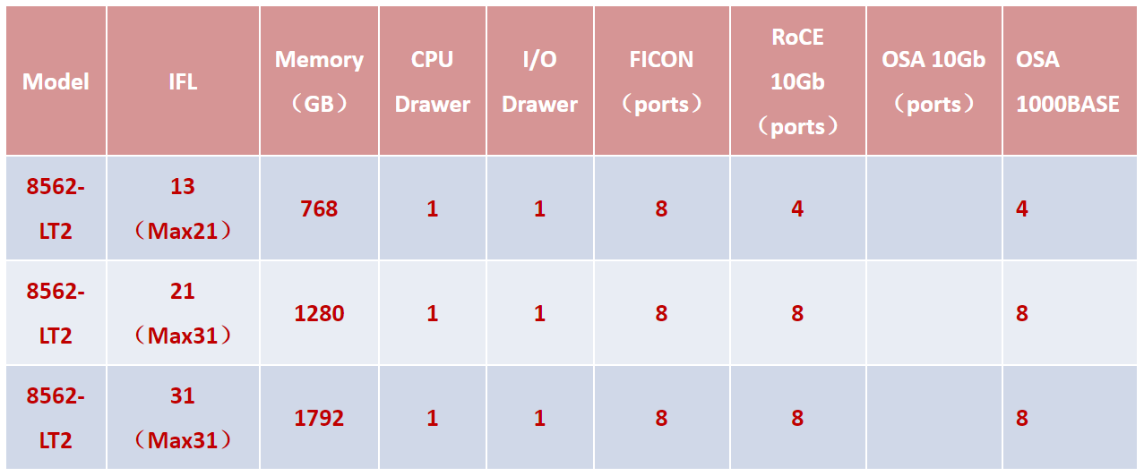 • 支持通过 RoCE, OSA, FICON和FCP协议进行I/O通信